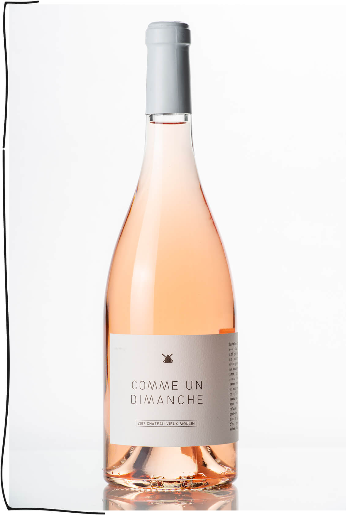 « Si un jour, vos pas vous mènent jusqu’au Château Vieux Moulin, la première chose que vous verrez sont les pins de l’allée qui mène au domaine. Imposants, majestueux… et courbés par le vent qui souffle presque en permanence ici. Ce vent, nous vivons avec. Parfois, nous restons bien droits, rigoureux, et parfois, nous nous laissons faire par son souffle et nous nous assouplissons un peu. Ce vin est un parfait mélange de cette puissance et de cette souplesse que nous impose cet élément qui fait désormais partie de nous. ».